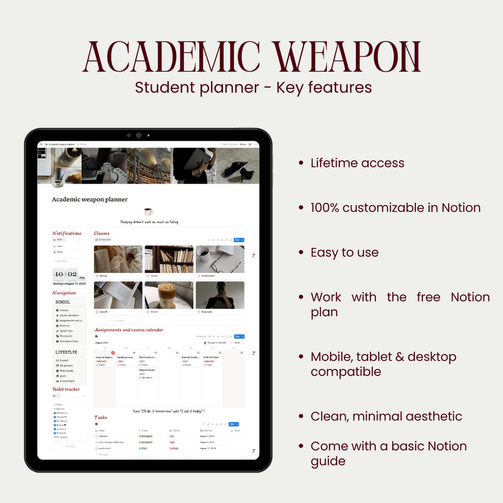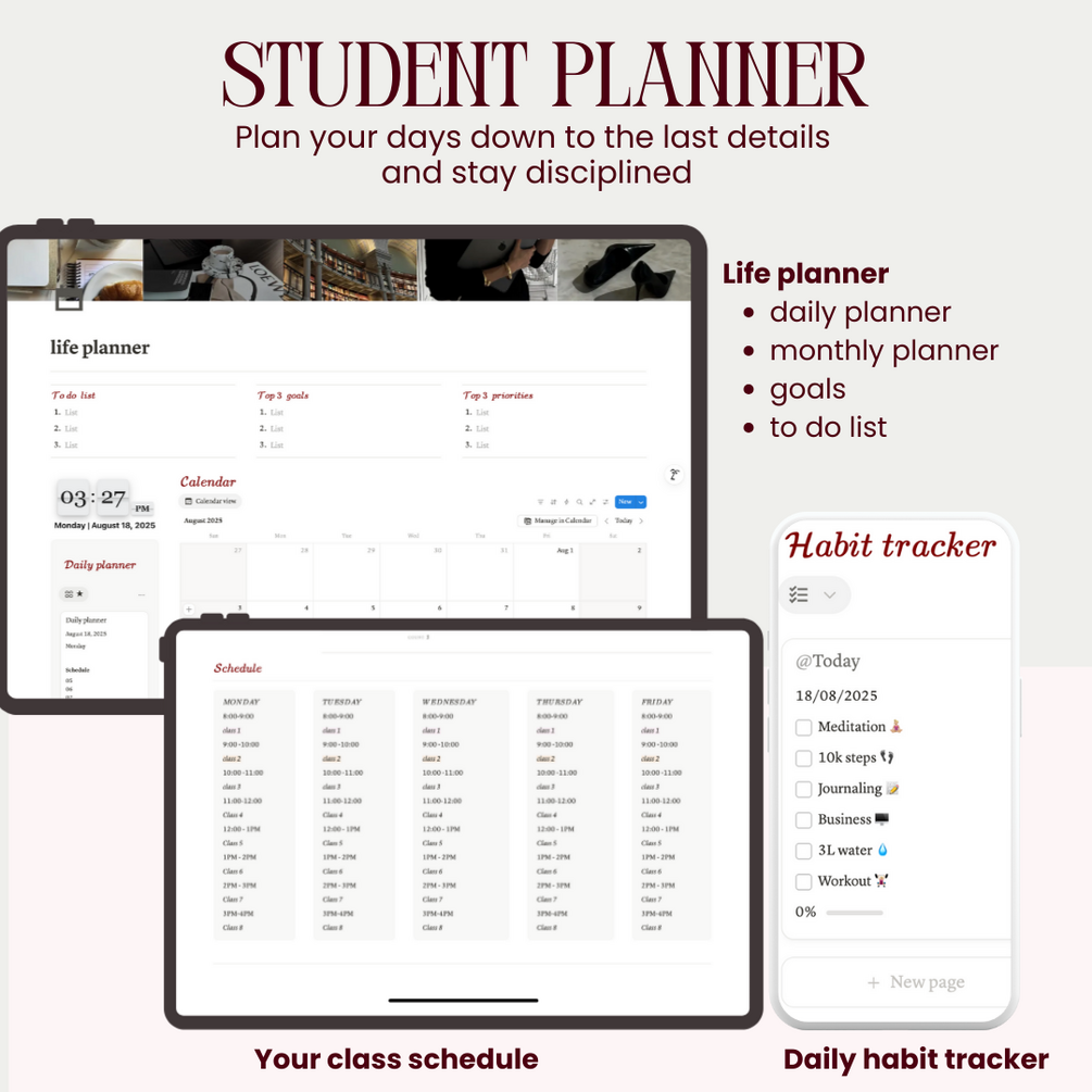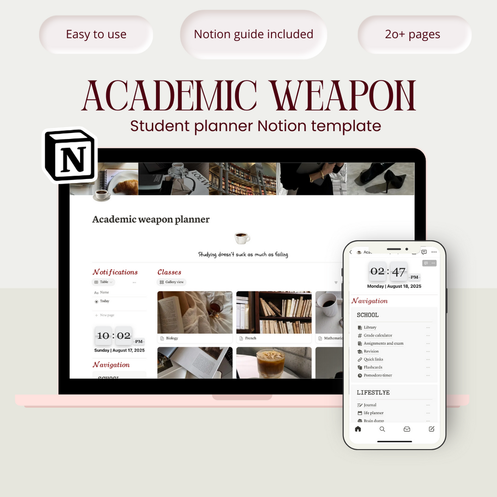 a complete aesthetic Notion student planner + FREE NOTION GUIDE