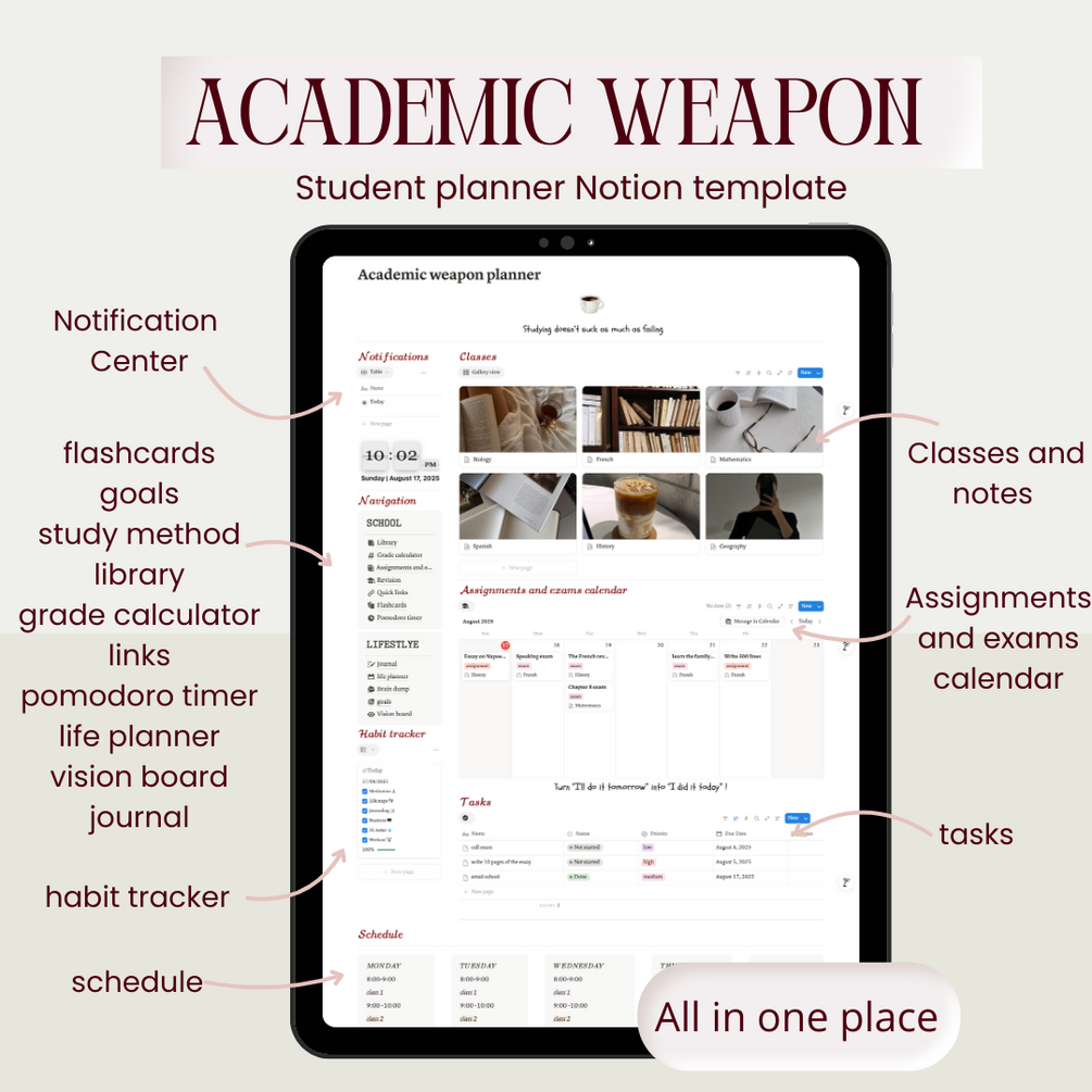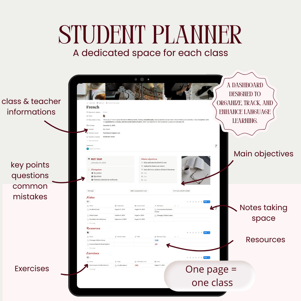 • 🏫 Class Notes Space – Capture, organize, and review lecture notes effectively.